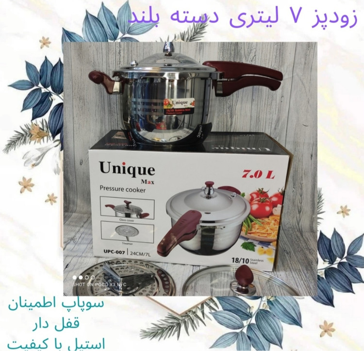 این محصول ۷لیتری بوده دارای دسته بلند دارای قفل و سوپاپ بوده از شرکت یونیک کیفیت فوق العاده ای دارد