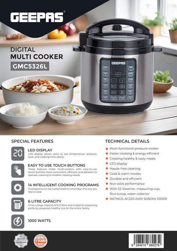 زودپز برقی 6 لیتر 14 کاره جیپاس مدل 5326