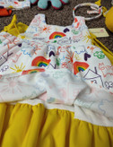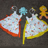 این کار دارای دو رنگ نارنجی و زرد بوده مناسب برای کودک دلبند ۲ساله تا ۶ساله شما همراه با تل سر بود دارای ۴سایز بود سایز ۳/۴/۵/۶/۷ جنس پارچه عروسکی اسکاجی خنک چین دار بوده که با شستشوی زیاد آب رفت ندارد و کار بسیار خوبی بوده قیمت فوق العاده ای دارد برای هر گونه مشاوره قبل از خرید میتونید با ادمین پوشاک واتساپ 09015424014
