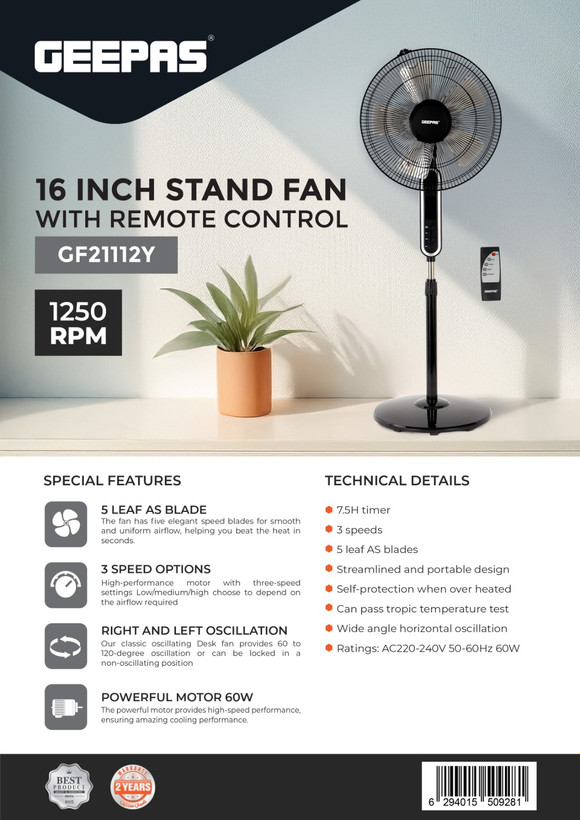 پنکه ایستاده جیپاس مدل۲۱۱۱۲ کنترل دار