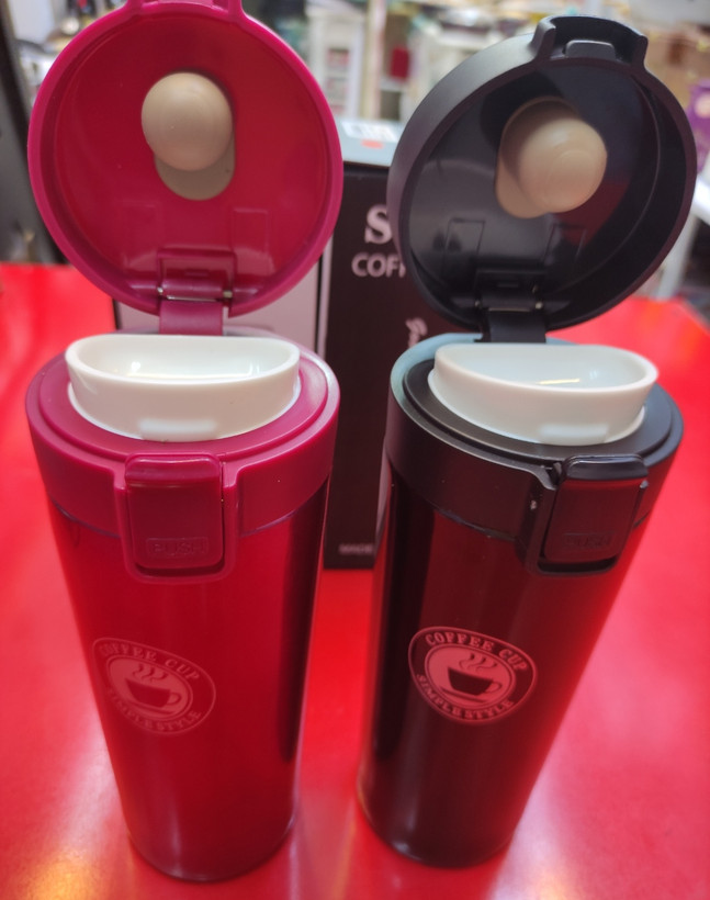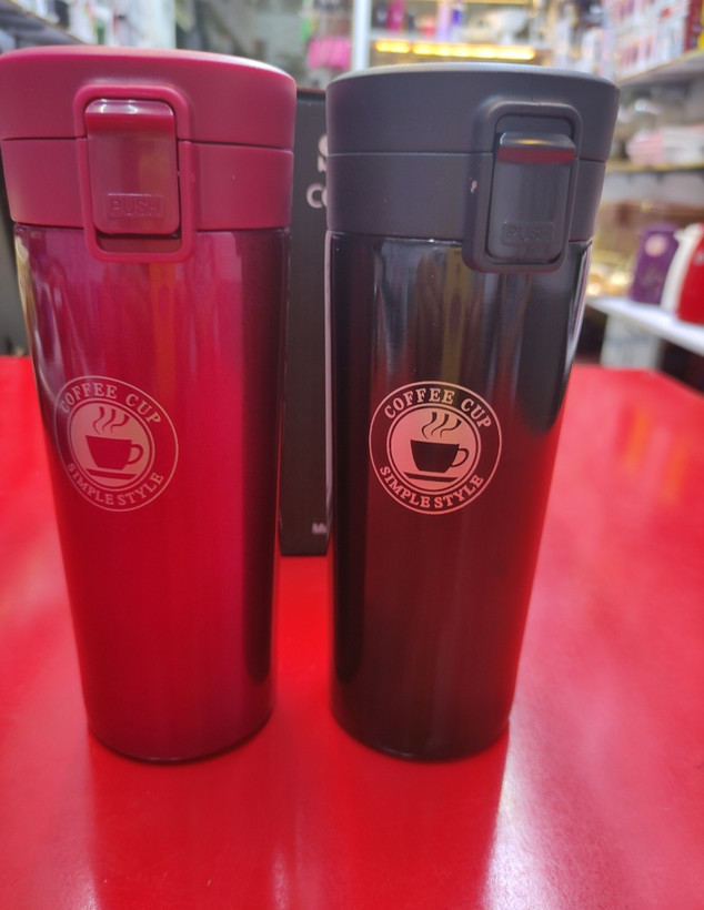 این محصول تمام استیل بوده بدنه بیرونی دو رنگ زیبای مشکی و زرشکی دارد دارای قفل درب و صافی با کیفیت بودهمناسب برای قهوه کاپاچینو و نوشیدنی های گرم و سرد بوده نگهداری بالای ۱۲ساعت و ۵۰۰میلی لیتز گنحایش دارد./