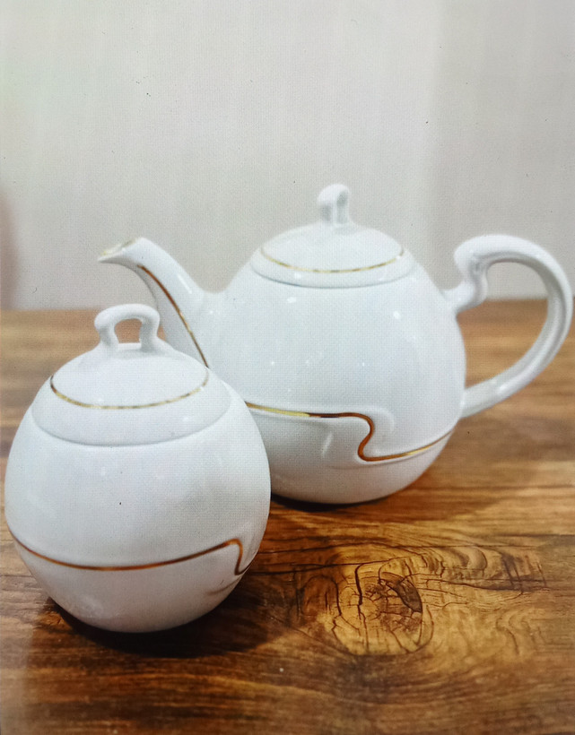 ست قوری و قندان بدنه سرامیکی طرح رویال