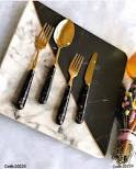 چاقو چنگال مشکی طلایی ماربل ۶چاقو و ۶چنگال