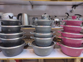سرویس دارای 4 دیگ در سایزهای 20 24 28 32 و یک ماهی تایه دو دسته در سایز 32 دارد کلیه ایتم ها درب شیشه ای دارد یه پیش بند و یک دستگیره در سرویس موجود می باشد سرویس در سه رنگ صورتی و مشکی و خاکستری موجود می باشد