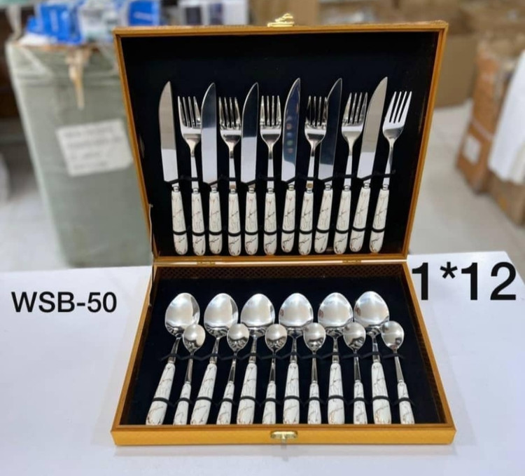 سرویس قاشق چنگال 24تکه سفید نقره ای ماربل برند YHمدلWSB50