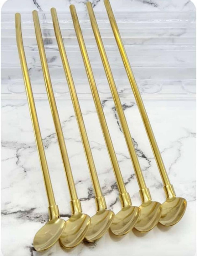جهیزیه سرای یلدا نوش طلایی نی و قاشق همراه با فرچه تمیز کردن تک فروشی: ۶۰ همکاری :۵۵ هر۱۲عدد پست میخوره اگر ارسال پستی باشه 09399719970 yalda_shop20 اینستا گرام www.yaldashop20.i نی نوش
