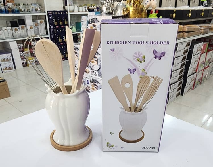 ست کفگیر ملاقه چوبی استندداربرند yh مدل 7298